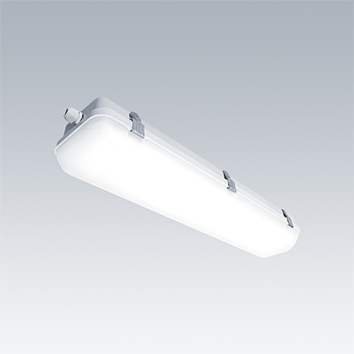 A wide body, linear, water resistant LED luminaire, specifically designed for general outdoor applications. DALI dimmable LED driver. Class I electrical, IP65, Impact strength: IK08. Body: light grey injection moulded polycarbonate, supplied with tamper resistant screws. Diffuser: opal polycarbonate. Gear Tray: sheet steel, powder coated white. WeatherForce G2 is able to be surface mounted or suspended. Complete with switchable light colour temperature 3000K - 4000K - 5700K LED.