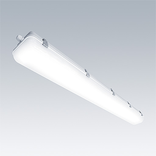 A wide body, linear, water resistant LED luminaire, specifically designed for general outdoor applications. DALI dimmable LED driver with 2 hour, manual test, emergency lighting circuit. Class I electrical, IP65, Impact strength: IK08. Body: light grey injection moulded polycarbonate, supplied with tamper resistant screws. Diffuser: opal polycarbonate. Gear Tray: sheet steel, powder coated white. WeatherForce G2 is able to be surface mounted or suspended. Complete with switchable light colour temperature 3000K - 4000K - 5700K LED.