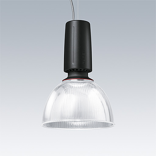 A modern and efficient LED pendant luminaire. Electronic, Wireless controlled via Casambi protocol suitable for central battery emergency installations. Housing: die-cast aluminium with satin black finish. Reflector: prismatic polycarbonate with easy bayonet mount connection to housing. Class I electrical, IP20. Suspended via adjustable quick-lock 2.5m single wire suspension (supplied). Pre-wired with braided, flame retardent silicone cable, 5 x 0.75mm². Complete with 3000K LED
