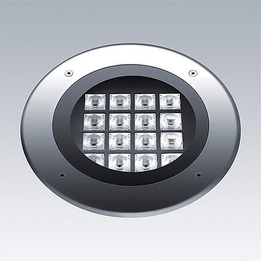 Cesar Opera, drive over a floor recessed, LED luminaire for decorative facade lighting, asymmetrical distribution.. DALI-2 dimmable LED driver. Class I electrical, IP67, Impact strength: IK10. Housing: die-cast aluminium, unpainted. Working ambient temperature: -20°C to +45°C. Complete with 4000K LED.