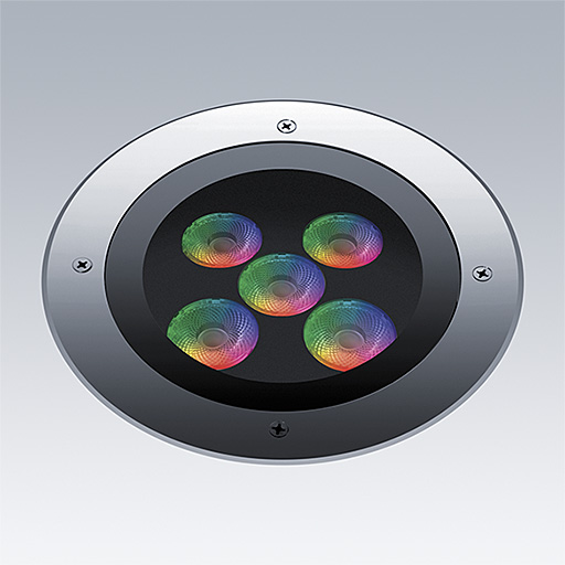 Cesar Opera, walk over a floor recessed, LED luminaire for decorative facade lighting, medium beam distribution.. Fixed output LED driver. Class III electrical, IP67, Impact strength: IK09. Housing: die-cast aluminium, unpainted. Working ambient temperature: -20°C to +37°C. Complete with RGBW LEDs.