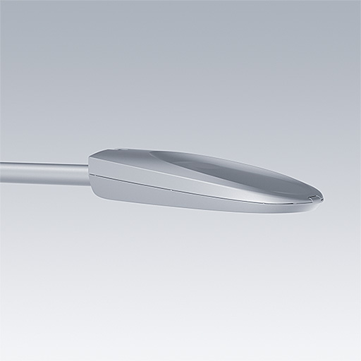 State of the art aesthetic lantern for urban and road lighting application with 36 LEDs driven at 500mA with Narrow Road optic. Electronic, fixed output control gear. Class II electrical, IP66, Impact strength: IK08. Body: die-cast aluminium (EN AC-44300), Light grey textured (150) - partly painted. Glass : tempered glass (4mm) offering >90% light transmission. Fixings: stainless steel with anti-galvanic treatment. Lateral Mounting D60mm, 0° tilt. Complete with 3000K LED.