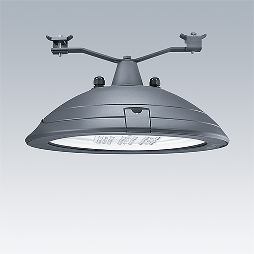 A large size, smart urban LED lantern with 72 LEDs driven at 500mA with Road Wet Condition optic and UV stabilised polycarbonate dome with opal finish. Class II electrical, IP66, IK08. Body, bracket and ring: die-cast aluminium (AS12U, LM6 equivalent, EN AC-44300) treated against corrosion, powder coated anthracite (close to RAL7043). Enclosure: 4mm toughened flat glass. Screws and closing set: stainless steel. Pre-wired with 12m cable. Catenary mounted. Complete with 3000K LED.