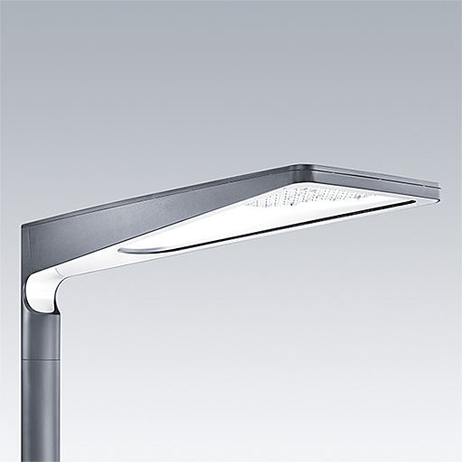 A large size LED urban street lighting lantern with 72 LEDs driven at 700mA with narrow road optic. Electronic, Programmable. Class I electrical, IP66, Impact strength: IK09. Body: Die-cast aluminium (EN AC-44300), textured anthracite. Cover: tempered flat clear glass. Fixings: stainless steel with anti-galvanic treatment. Post top mounting to Ø60mm column. Complete with 4000K LED.