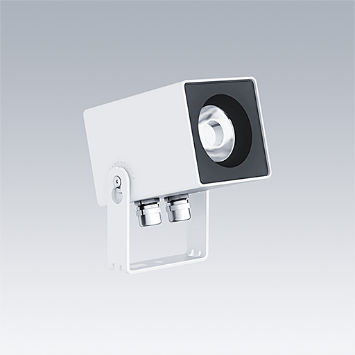 Caelon S adjustable surface mounted spotlights for the illumination of architectural facades, feature details, niches and structures. Class I electrical, IP66 with. Equipped with Fixed output driver. Body: die-cast aluminium in white. Stainless steel screws. ambient temperature: -20°C to +25°C. Complete with 3000K LED.
