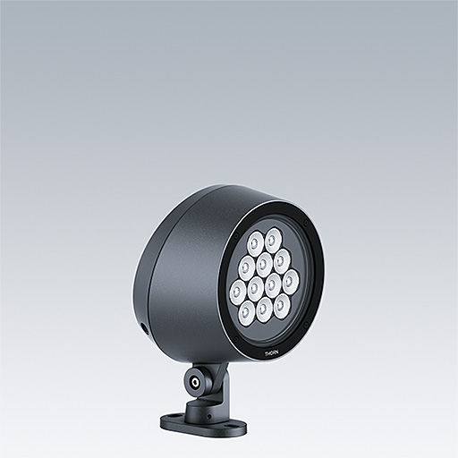 A medium architectural Bracket mounted LED Floodlight with 12 LEDs driven at 700mA and a narrow beam distribution. LED driver, DMX controllable control gear. Class II electrical, IP66, IK08. Body: die-cast aluminium (EN AC-44300), powder coated, textured anthracite (close to RAL7043). Compatible with coastal environments. Glass: tempered, 5mm thick. Gasket: EPDM. Screws: geomet. Equipped with 10kV / 10kA surge protection device. Complete with RGBW LEDs (White = 830)