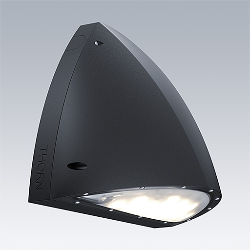 A robust wall mounted luminaire with switchable lumen output. Electronic, fixed output control gear. Back plate: die-cast aluminium (EN AC-44300), painted anthracite. Body: anthracite polycarbonate. Ø20mm cable entry via rear or side conduit entries, BESA compatible. IP65, IK10. Equipped with Mini Photocell with pre-set On : 50 Lux - Off 100 Lux.