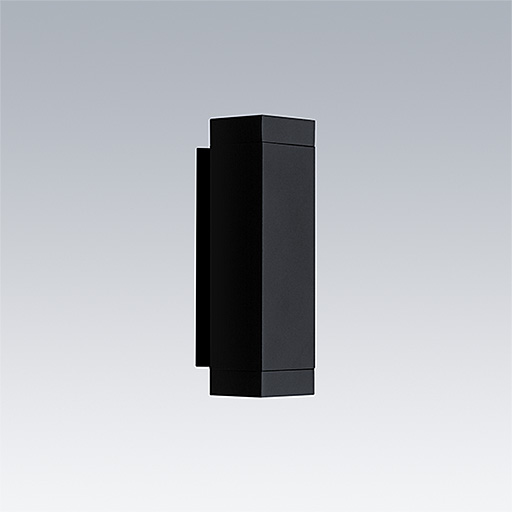 Axyl Glow fixation murale, luminaire architectural à LED pour l'éclairage décoratif des façades, avec 2 échancrures et distribution. Classe électrique III. gradable DALI-2 Déporté Driver. IP65, Résistance aux impacts : IK06. Boîtier : aluminium Moulage sous pression, thermopoudré texturé noir (similaire à RAL9005). Température de service de Température ambiante : -20°C à +50°C. Livré avec LED 4 000 K.