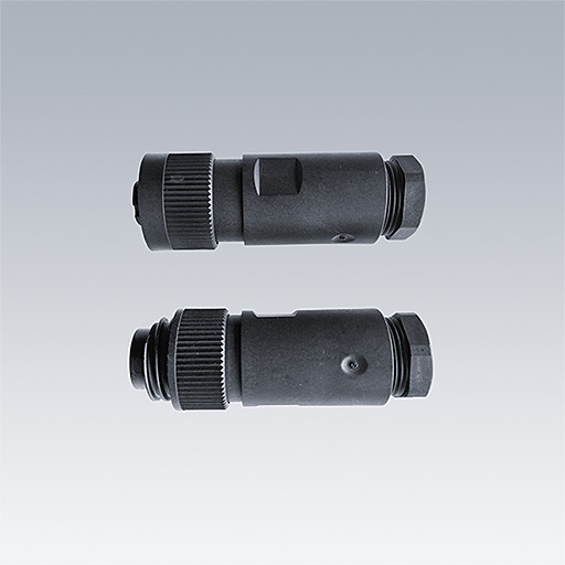 Kit de connecteurs mâle + femelle IP68, en plastique thermoformé PBT UL94, résistant aux contraintes mécaniques et à la chaleur (-40°C/+100°C). Compatible avec une section de câble de 8 à 10 mm de diamètre. Section max. : 1,5 mm².
