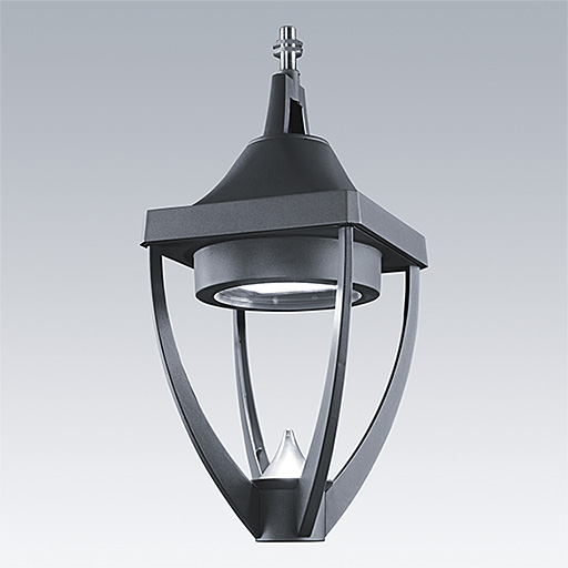 Lanterne LED patrimoine moderne suspension avec optique fermée. Electronique. Classe électrique I, IP65, IK08. Corps : aluminium Moulage sous pression thermopoudré gris 900, finition texturé (close to RAL 7043). Boîtier : verre trempé plat. Protection contre les surtensions : 10 kV en mode commun single pulse et 8 kV en mode commun multipulse; 6 kV en mode différentiel multipulse. Si un système DALI est connecté: 6 kV en mode mode commun et mode différentiel multipulse. Livré avec LED 3 000 K.