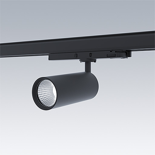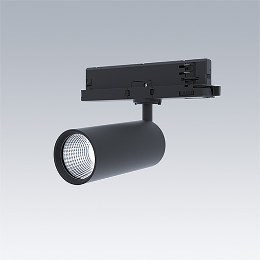 Projecteur LED pour installation sur rail triphasé avec distribution lumineuse de type spot et température de couleur stabilisée. Electronique, non gradable. Classe électrique II, IP20. Corps : aluminium Moulage sous pression, peinture microtexturée noir. Réflecteur : PC poudré. Projecteur orientable sur le plan horizontal de 360° et inclinable sur le plan vertical de 90°. Livré avec LED 4 000 K