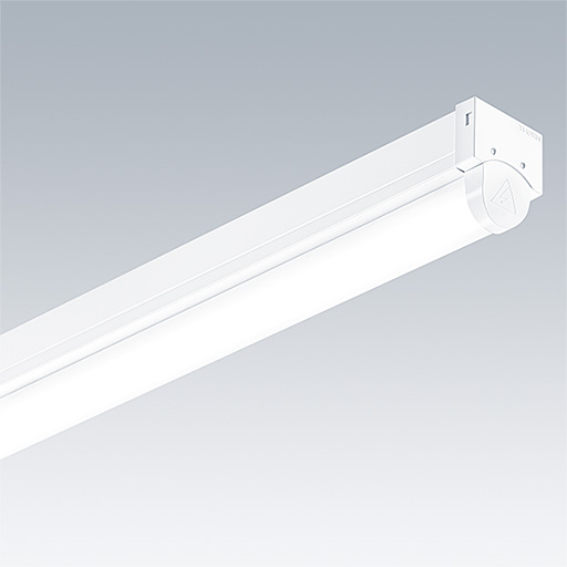 Réglette LED. Électronique, Appareillage gradable DALI. Corps : acier moulé, revêtu, blanc (RAL9016). Embouts : Polycarbonate (PC) moulé par injection. Diffuseur : acrylique texturé opale. Livré avec LED 4 000 K