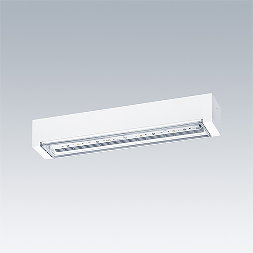 Luminaire de secours à LED Slim IP65 pour un montage apparent, au mur ou au plafond ; avec adaptateur à clipser pour un montage apparent au mur fourni, montage encastré au plafond possible avec cadre d'encastrement en option ; Luminaire pour alimentation centralisée de l'éclairage de sécurité avec surveillance du circuit électrique sans surveillance individuelle du luminaire ; Le modèle High performance (HP) permet l'agrandissement de la distance entre luminaires ainsi que des applications avec des éclairements plus élevés (p. ex. 5 lux, 1 footcandle) ; ; ; ; Longueur du câble entre la source de l’alimentation de sécurité et le dernier luminaire : max. 300 m ; avec optique à clipser optimisée en option pour les voies d'évacuation et les zones ouvertes à partir de hauteurs de montage plus élevées ; informations à clipser pour une vision à une distance maximale de 23 m et de 30 m permettant une transformation en un luminaire à pictogramme ; boîtier en polycarbonate blanc ; vasque en polycarbonate transparent ; montage sans outils par simple « clic » après la mise en place de la base du boîtier ; bornier à montage rapide, câblage traversant possible jusqu'à 2,5 mm² ; aucun entretien grâce à la technologie LED ; durée de vie de 50 000 h à flux lumineux constant ; alimentation électrique : 220/240 V AC ; Puissance du luminaire: 5,6 W ; degré de protection : IP65, classe de protection : SC2 ; résistance aux impacts : IK03 ; Dimensions : 336 x 54 x 59 mm ; poids : 0,6 kg